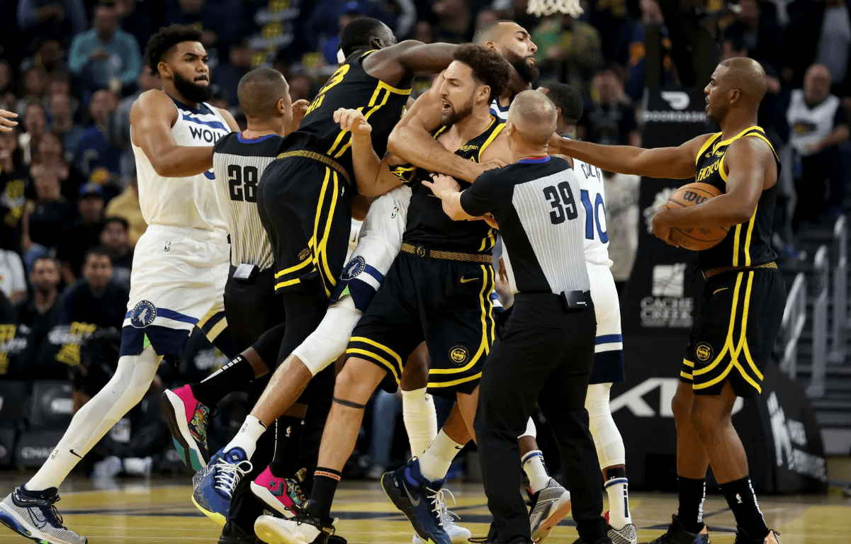 Al minuto y medio de partido y tras capturar un rebote Draymond Green se inicia la trifulca. En ese mismo rebote empiezan a agarrarse Klay Thompson y Jaden McDanields y continúan agarrándose hasta el mediocampo. Una vez allí se medio enzarzan y el partido se para. Cuando se está separando a los dos jugadores Draymond Green se abalanza sobre Rudy Gobert y empieza a hacerle un «mataleón» que dura más o menos 8 segundos y deja al pivot francés en el suelo intentando recuperar la respiración. En este tiempo en el que Green realiza esta llave son 7 las personas que intentan parar el conflicto y no es hasta que Gobert es soltado cuando todo se relaja. Los 3 jugadores fueron expulsados y tuvieron que ver el partido sin poder participar. No voy a entrar en quién inicia el conflicto originario pero si que voy a mojarme en que lo que hace Draymond no tiene cabida en mi NBA.