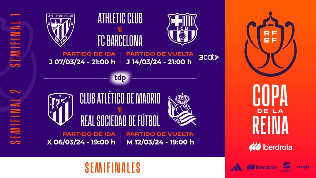 La primera semifinal se disputará el 7 y 14 de marzo la segunda será el 6 y 12 de marzo. La ida serán en casa del Athletic Club y en el Alcalá de Henares la casa del Atlético de Madrid. En cuanto a equipos favoritos, en la primera semifinal sobre el papel está muy desequilibrado, el Barça Femení está a un nivel de extraterrestres y solo el césped y un milagro llamado Nanclares podrían evitar la victoria culé.