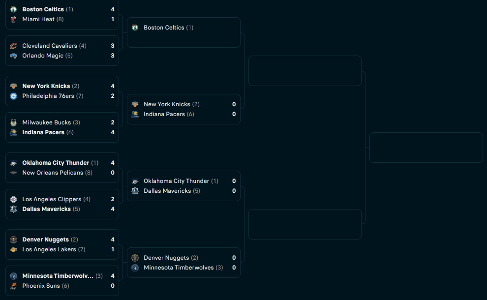La serie ha sido rara, llena de vaivenes y desafines. Los Clippers se hunden en un proyecto sin esperanza ni planes, con un entrenador que suena para el equipo vecino y una estrella que solo ha estado sano 2 Play-Offs desde 2019. Paul George sin renovar, dejándose querer en agencia libre y James Harden, que no sabemos que será de él y si tendrá la cabeza en su sitio cuando toque. Los Mavericks, con Kyrie Irving como funambulista y Lively como pilar interior ante el apagón de Gafford, consiguen llevar a la franquicia tejana a la siguiente ronda. Jason Kidd ha estado mejor de lo que pensaba: entendió que era serie para Green y no para Exum, y rotó a los pivots de la manera que tocaba. A veces le faltó cortar un poco el ritmo ofensivo de los Clippers con algún tiempo muerto, cosa que tendrá que corregir antes de enfrentarse a los Thunder en la siguiente ronda. Llegan después de una serie física y dura (más comparada aún con el paseo que ha sido la de su rival) así que es posible que les acabe faltando el fuelle. Igualmente, hemos visto a Luka plantarse en unas finales de conferencia con un equipo ampliamente inferior al que tiene ahora así que nunca dudaría de sus capacidades, y me costaría votar en su contra.