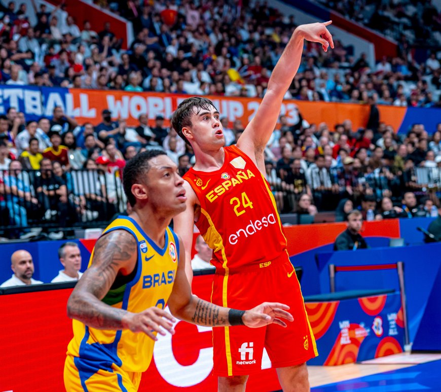 España gana a Brasil con autoridad (78-96), después de un repertorio de calidad de Juan Núñez y un gran partido defensivo para presentar su candidatura. La jornada 2 de la Copa Mundial de Baloncesto 2023, empezó de lo lindo, con la eliminación sorpresa de Francia frente a Letonia. España tenía un objetivo claro, alcanzar la siguiente fase y para ello debía ganar a Brasil. Sergio … Continúa leyendo Juan Núñez señala el camino de España